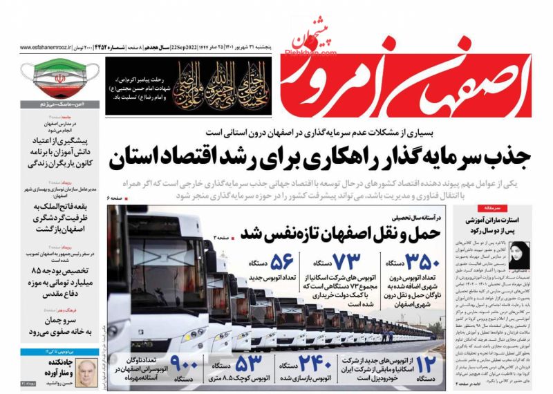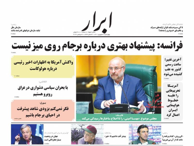 عناوین روزنامه های پنج‌شنبه ۳۱ شهریور ۱۴۰۱